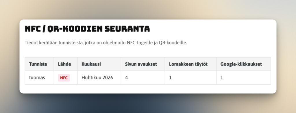 2. Yksittäisten NFC- ja QR-tägien hiuksenhieno seuranta 🎯